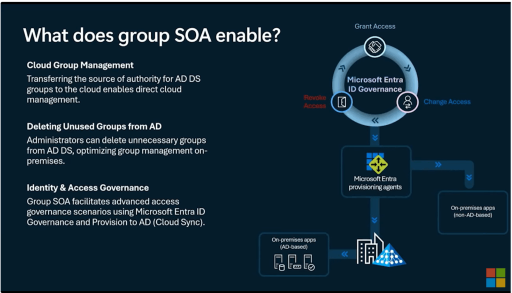 Contained within the July 31, 2025 Microsoft Entra Connect Update 2.5.76.0 is the listing for the added Group Source of Authority conversation feature (Public Preview) which will allow on a per Active Directory Group basis an administrator to transfer the Group Source of Authority from Windows Active Directory to Microsoft Entra ID. The per group basis allows for a nicely phased approach for the transfer!